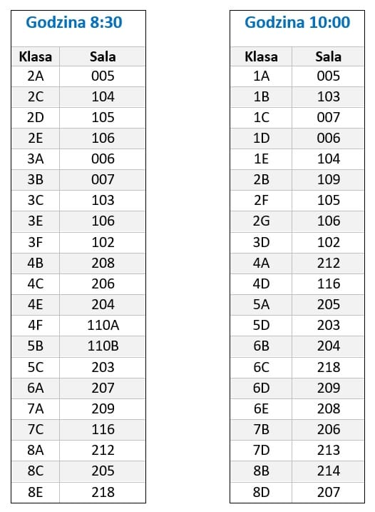 Po inauguracji roku szkolnego w hali sportowej, w wyznaczonych salach lekcyjnych odbędą się spotkania z wychowawcami.