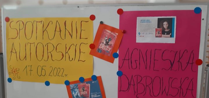 17 maja w naszej szkole odbyło się spotkanie z autorką Agnieszką Dąbrowską poświęcone jej najnowszej książce ,,Za duży na bajki’’ . W spotkaniu wzięły udział wszystkie klasy 4-7. Wydarzenie zostało zorganizowane przez bibliotekę szkolną.