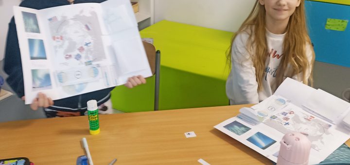W trakcie omawiania lektury „Anaruk chłopiec z Grenlandii” uczniowie klasy 3C poznali bogaty i fascynujący świat Arktyki przygotowując lapbooki. Dotarli na sam biegun północny, oczywiście poruszając się palcem po globusie. Odszukali kraje, których część...