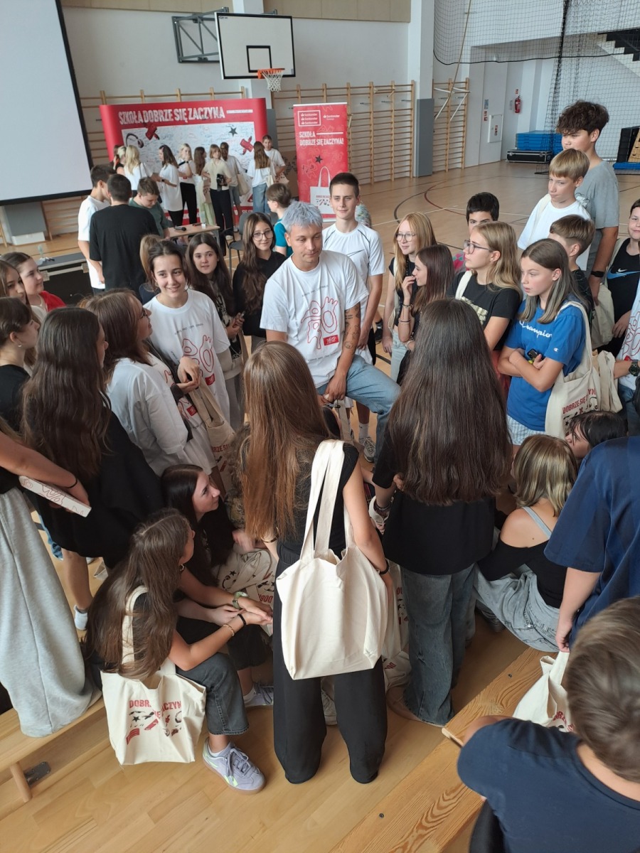 Teoretyczna wiedza została uzupełniona praktyczną przez znanego wśród młodzieży influencera Przemka Pro. Przemek jako ambasador Fundacji opowiadał o swoich doświadczeniach związanych z prowadzeniem własnej firmy. Uczniowie zadawali sporo pytań, a na koniec mogli wykonać pamiątkowe zdjęcia z influencerem.