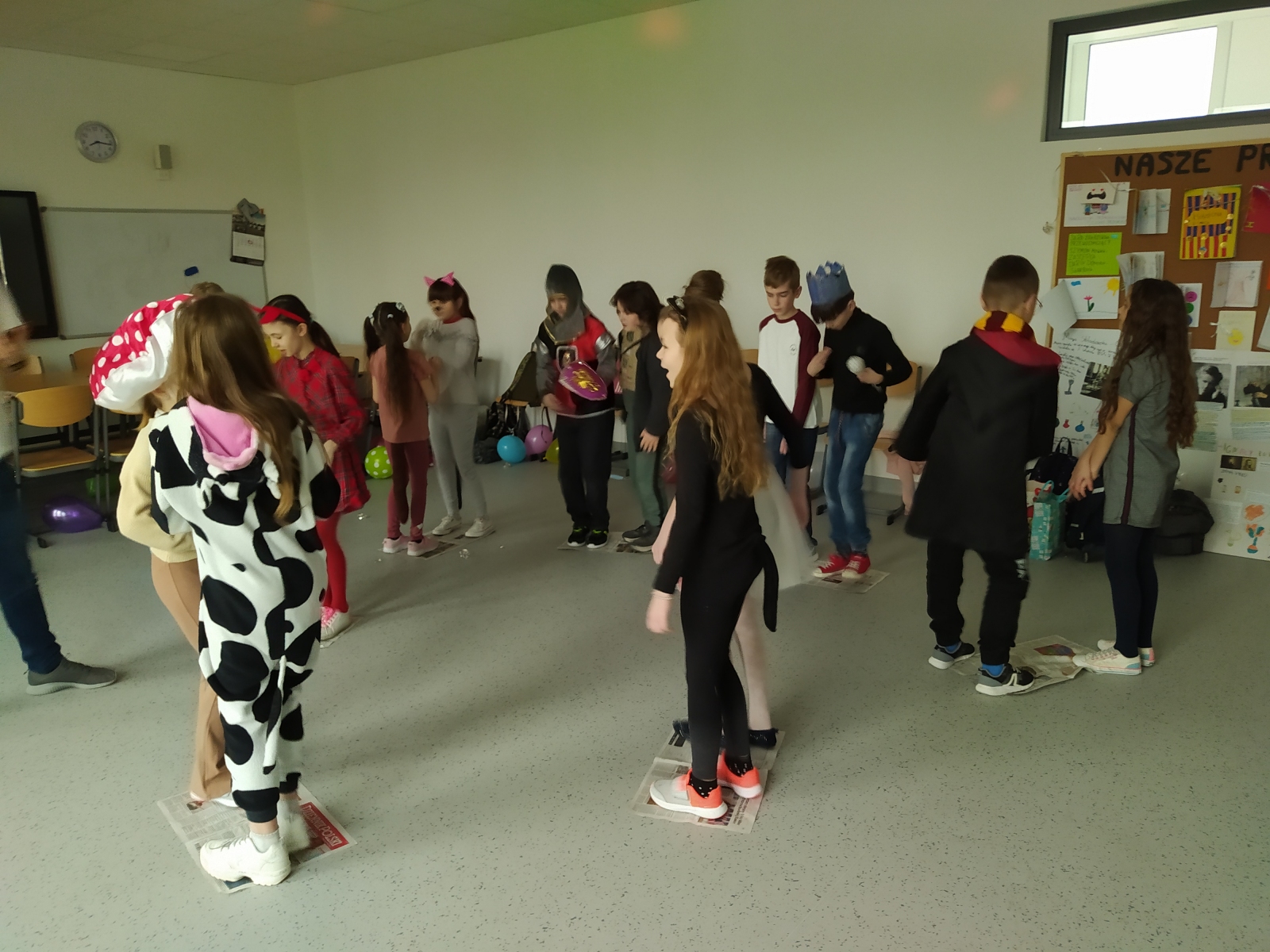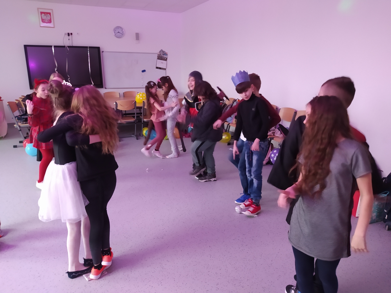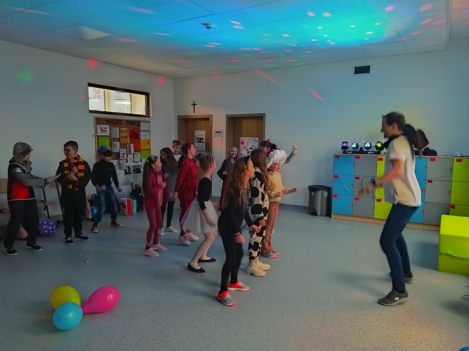 Dnia 21.02.2022 r klasa 3D gościła Tatę naszej uczennicy, Pana Krzysztofa Ożóg, który zawodowo zajmuje się tańcem. Poprowadził nas w zabawie karnawałowej, wyginańcach i konkursach tanecznych. Jak na bal przystało, nie zabrakło dyskotekowych świateł, balonów i confetti. Klasa integrowała się w konkursie z balonami, tańcząc na gazecie, czy odwzorowując ruchy konferansjera. Muzyka była tak skoczna, że wszyscy tańczyli aż pot spływał z czoła!