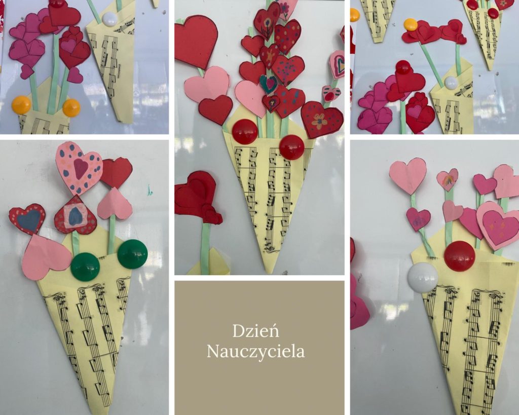 Uczniowie stworzyli „Serduszkowe bukiety” z okazji Dnia Edukacji Narodowej jako wyraz szacunku i wdzięczności za trud i serce wkładane w codzienną pracę.