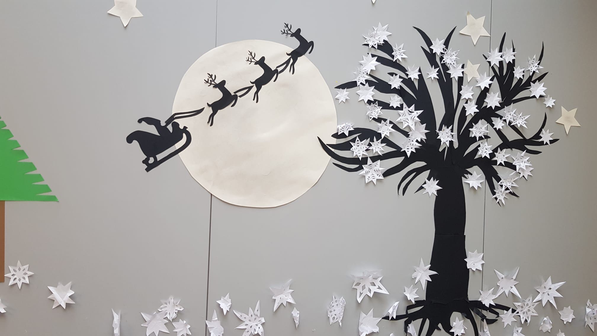 Uczniowie z dolnej świetlicy z wielkim zaangażowaniem pomogli zmienić wystrój naszej sali na zimowy! Wspólnymi siłami stworzyliśmy piękne choinki, Mikołaje oraz mnóstwo wyjątkowych śnieżynek! Efekty można już podziwiać w galerii poniżej!