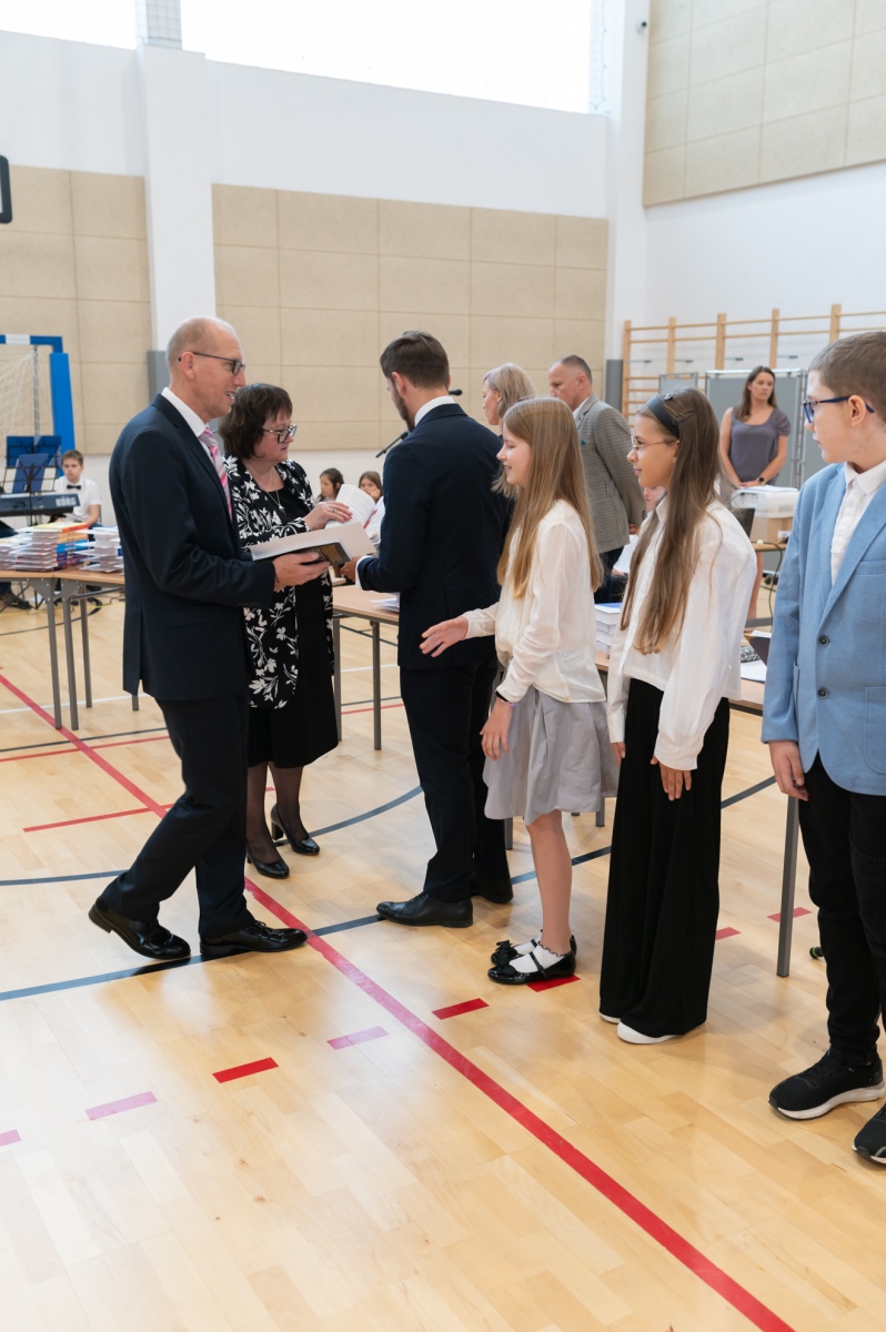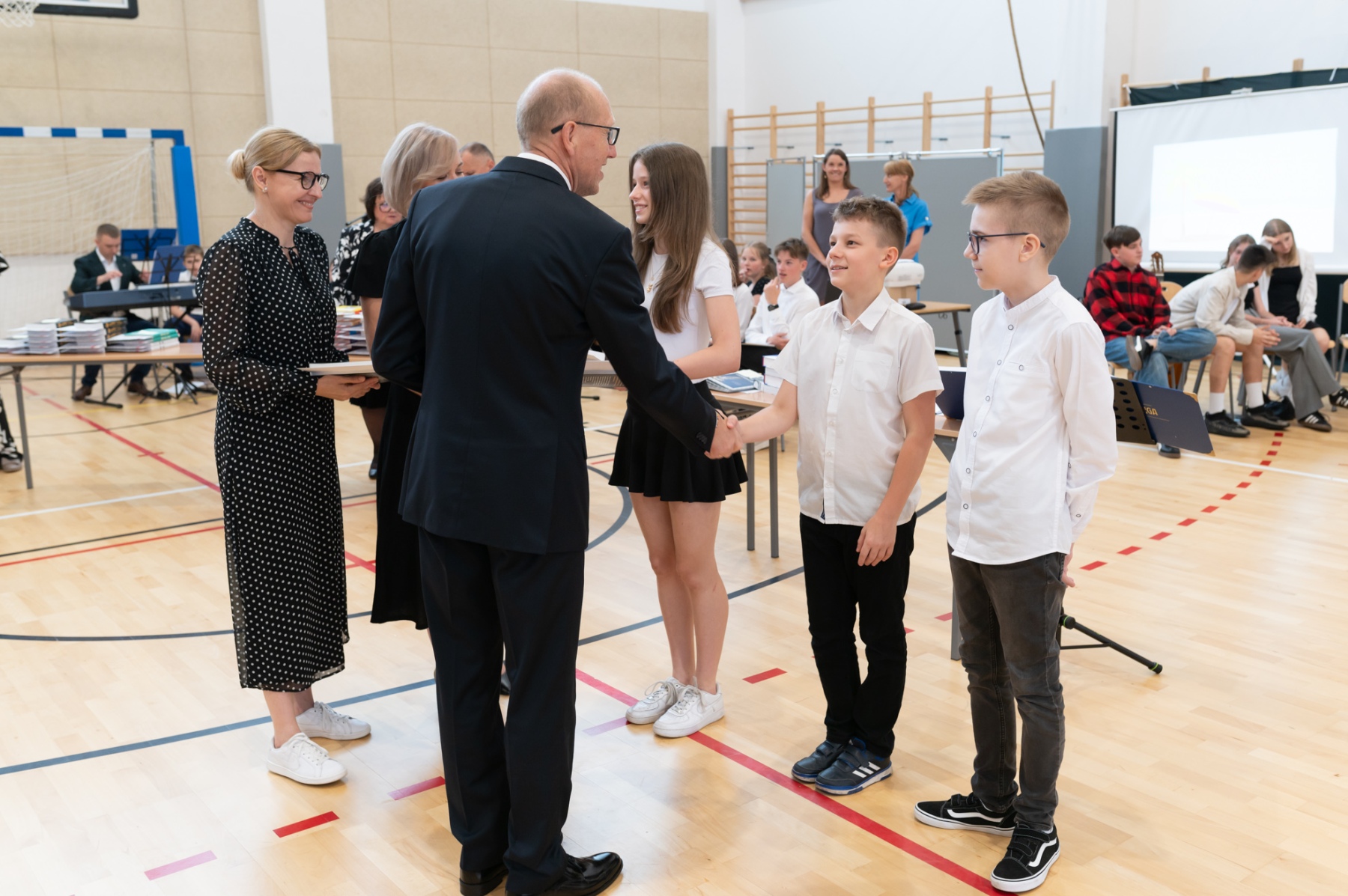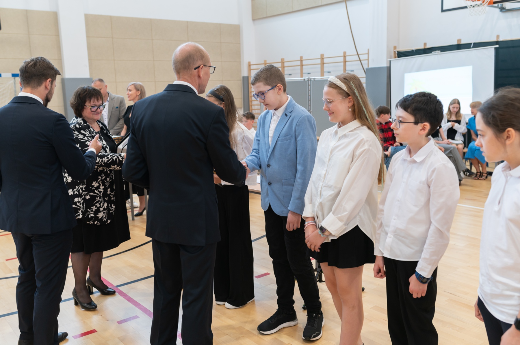 W piątek uczniowie, którzy uzyskali średnią nie niższą niż 5,0 i zachowanie wzorowe, odebrali nagrody i listy gratulacyjne z rąk naszej Dyrekcji oraz wychowawców poszczególnych oddziałów. Z łezką w oku pożegnaliśmy uczniów klas ósmych. Z tej okazji klasy siódme pod przewodnictwem Pani Renaty Rosołek i Pani Sylwii Łapcik przygotowały piękny program artystyczny. Nad muzyczną oprawą czuwał Pan Marcin Głąb wraz ze szkolnym chórem.